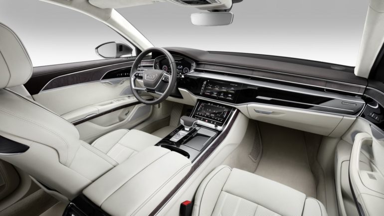 Na unutrašnjost ne treba trošiti previše rije?i. Slike govore sve, a dobro je poznato da su inženjeri Audija lideru u koncipiraju armature, ergonomiji i završnoj obradi. Naravno, u Audiju A8 svi gadgeti dodatno ostavljaju bez daha. Naime, novi A8 zna se sam parkirati i pritom voza? ?ak niti ne mora biti u automobilu, dovoljno je da samo pokrene manevar automatiziranog parkiranja preko aplikacije na pametnom telefonu. Po pitanju sigurnosti, tako?er mu nema premca. ?ak 41 sustav pomo?i voza?u pobrinut ?e se da svi u automobilu sigurno stignu od to?ke A do to?ke B, a da to bude u najve?em mogu?em luksuzu zaduženo je relaksiraju?e sjedalo s masažom nogu. Armaturom dominira virtualni kokpit s ekranom HD rezolucije od 1920 x 720 piksela, a na središnjoj konzoli nalazi se 10,5-in?ni ekran Infotainment sustava.
