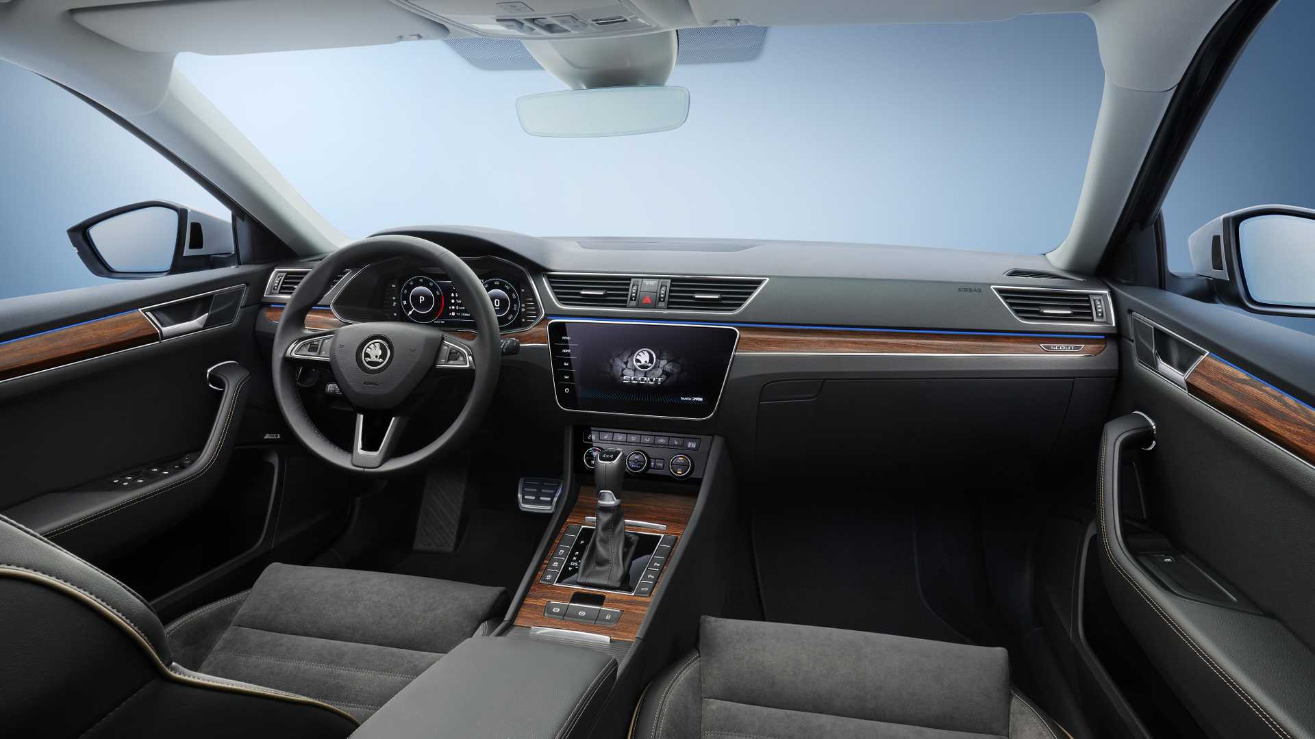 Unutrašnjost je oplemenjena elementima od mahagonija, a Infotainment sustav nudi off-road prikaze, preuzete iz modela Kodiaq. Što se ti?e pogonskog sklopa Škoda Superb Scout bit ?e raspoloživ isklju?ivo uz najsnažniju motorizaciju – 2.0 TSI sa 272 KS i 350 Nm te 2.0 TDI sa 190 KS i 400 Nm. U obije izvedbe za prijenos snage zadužen je 7-stupanjski automatski mjenja? DSG.