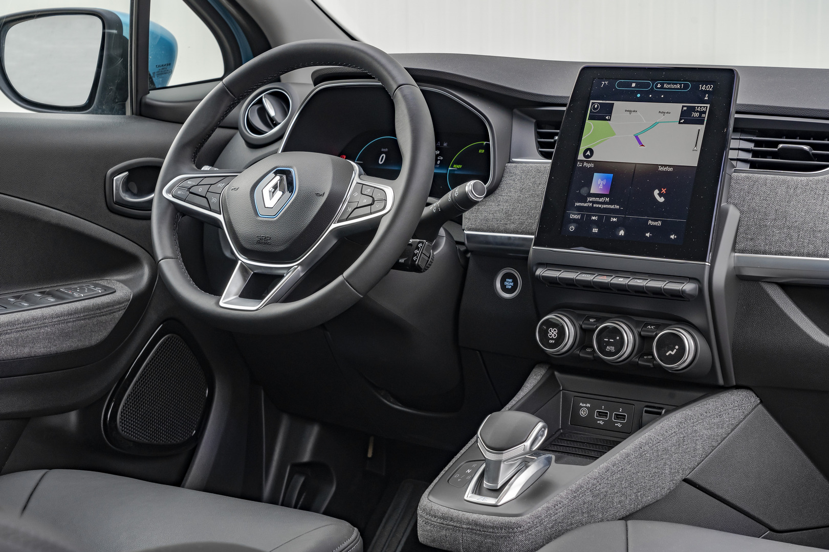 Meki, podatni materijali i mat efekt obnovljene instrumentne plo?e pridonose šarmu i udobnosti unutrašnjosti. Ispod zaslona multimedijskog sustava Renault EASY LINK smjestila se potpuno obnovljena središnja konzola, s tehnološkim inovacijama koje je Renault posebno osmislio za novi ZOE: elektroni?ki upravljiva ru?ica mjenja?a, automatska parkirna ko?nica, indukcijski punja? i dr.