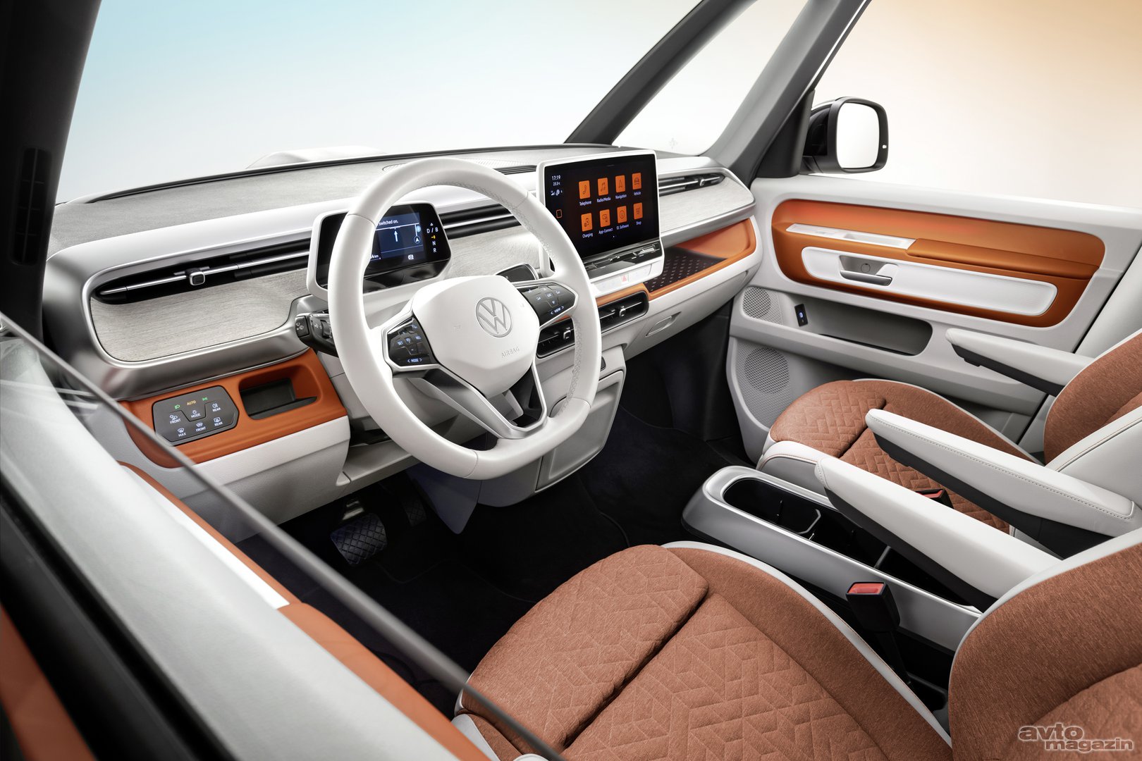 Odaberite dvobojnu vanjštinu, a kabina ?e imati istu temu boja, iako ?emo morati pri?ekati i vidjeti kako ?e biti lako zadržati bijeli volan i presvlake u dobrom stanju kroz neko dulje vrijeme. Prakti?an je ID. Buzz. ima do osam USB-C uti?nica za punjenje u cijeloj kabini, dok je nova inovacija ‘Buzz Box’. Ovo je središnji spremnik za pohranu koji se nalazi izme?u prednjih sjedala i sadrži gornji pretinac u kojem se nalazi struga? za led i otvara? za boce, spremište za boce i veliku ladicu od pet litara za odlaganje krupnijih predmeta.