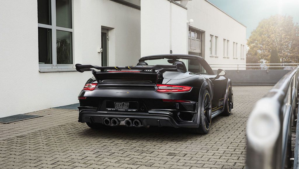 Iznimno agresivan bodykit potpuno je izmijenio liniju legendardnog Elfera pa Porsche 911 Turbo Cabriolet nakon tretmana u Techartu djeluje osjetno druk?ije. O ukusima se na raspravlja. Nekima ?e se svidjeti, drugima ne?e, ali ?injenica je da su stru?njaci iz Techarta uložili puno truda kako bi postigli dobar kompromis izme?u atraktivnosti i aerodinamike. Primjerice, stražnje krilo pri brzini od 300 km/h stvara potisak od 320 kg.