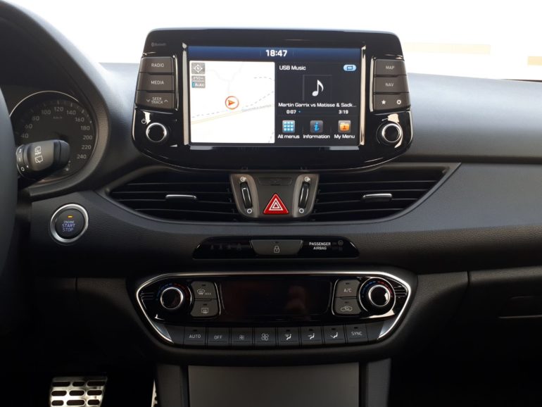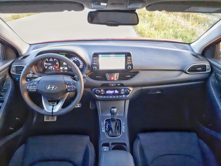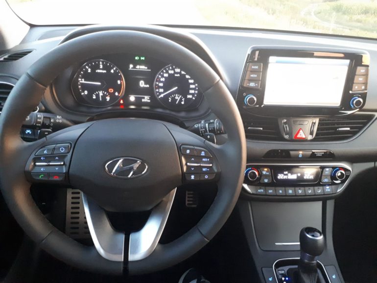 Sve je nadohvat ruke i intuitivno posloženo što ve? pri prvom sjedanju za upravlja? voza?u olakšava korištenje automobila i daje osje?aj sigurnosti odnosno pravu doma?u atmosferu. 4,2“ središnji display postavljen je vodoravno na središnju konzolu ?ime podsje?a na neke od premium modela svetog trojstva (BMW serije 1, Audi A3 ili Mercedes A klase) što je još jedan od pokazatelja koliko visoko „cilja“ ovaj „koreanac“. Na upravlja?u se nalazi cijeli niz upravlja?kih funkcija koji je u testnom primjerku opremljen i grija?ima što je odli?no u hladnim zimskim jutrima. Testni primjerak je pored toga bio opremljen i tempomatom sa ograni?enjem brzine, sustavom upozorenja voza?a na umor, automatskim paljenjem dugih svjetala (sustav radi odli?no kao i na Hondinim modelima), grijanim prednjim sjedalima, sustavom upozorenja o mogu?nosti sudara sprijeda, sustavom upozorenja o napuštanju vozne trake, sustavom pomo?i pri kretanju uzbrdo i još nizom raznih sigurnosnih i tehnoloških gadgeta.