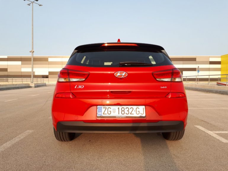 Klinasti dizajn sa izduženim prednjim krajem koji krase pomodni detalji poput velike sa?aste rešetke hladnjaka, LED dnevna svjetla, maglenke i dopadni nakošeni farovi preko kromiranih ru?ica za otvaranje vrata i obruba oko prozora, odnosno vodoravnih visoko postavljenih LED stražnjih svjetala jasno je kako novi Hyundai i30 kupce želi osvojiti estetskom privla?nosti. Odli?an i na prvu oku ugodan dizajn jamac su znatiželjnih pogleda prolaznika u što smo se uvjerili na našem sedmodnevnom testu. U prilog tome ide i jarka crvena boja ?ime se automobil još više isti?e iz mase bijelih, sivih i crnih vozila. Kao nedostatak vanjskom izgledu navodimo col manje kota?e ?ime bi sam automobil izgledao još atraktivnije, no sa druge strane na 17 colnim kota?ima kojima je bio opremljen testni primjerak olakšano je penjanje na plo?nik kao i silazak na makadam bez bojazni po ošte?enje naplataka.