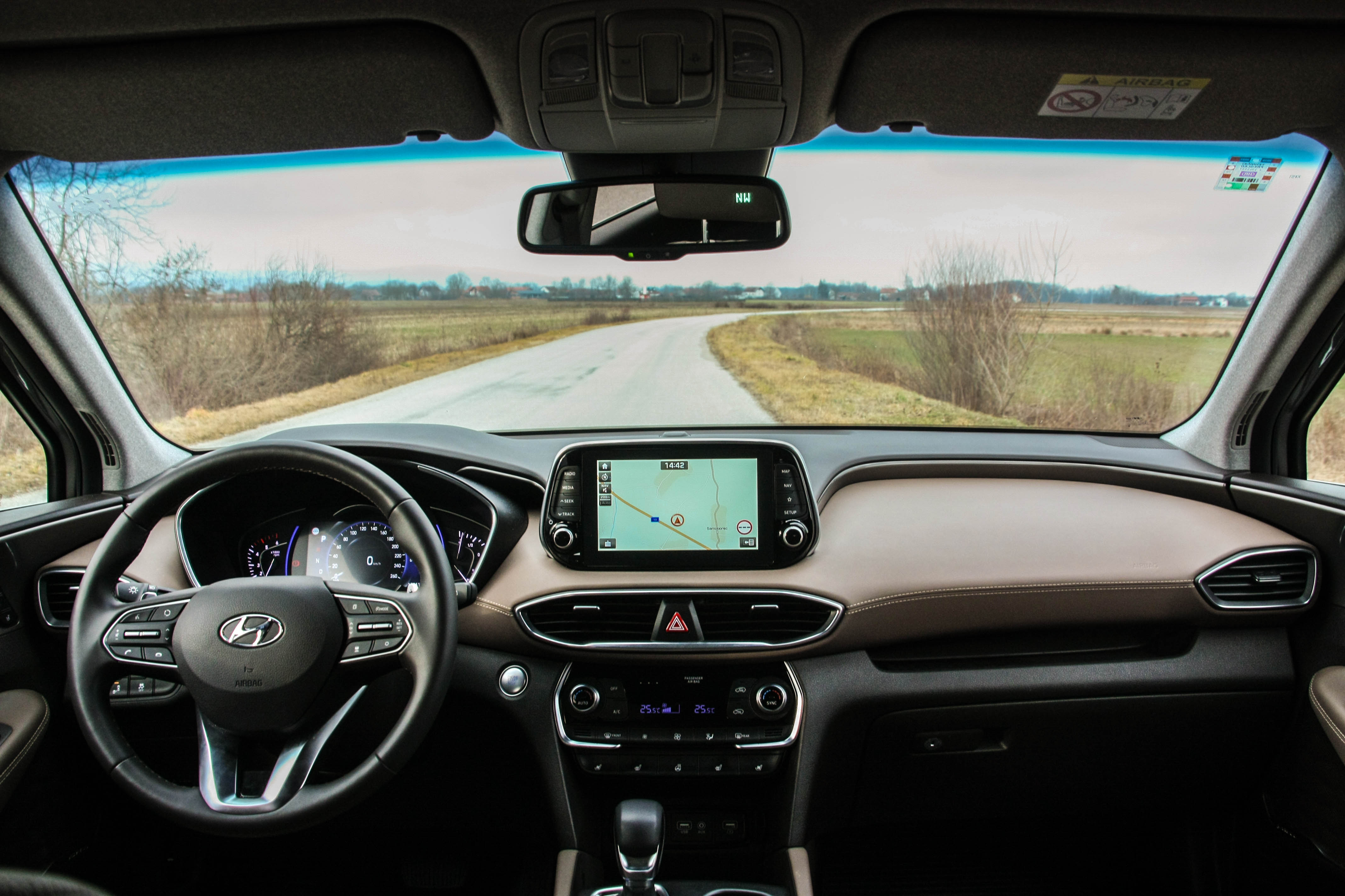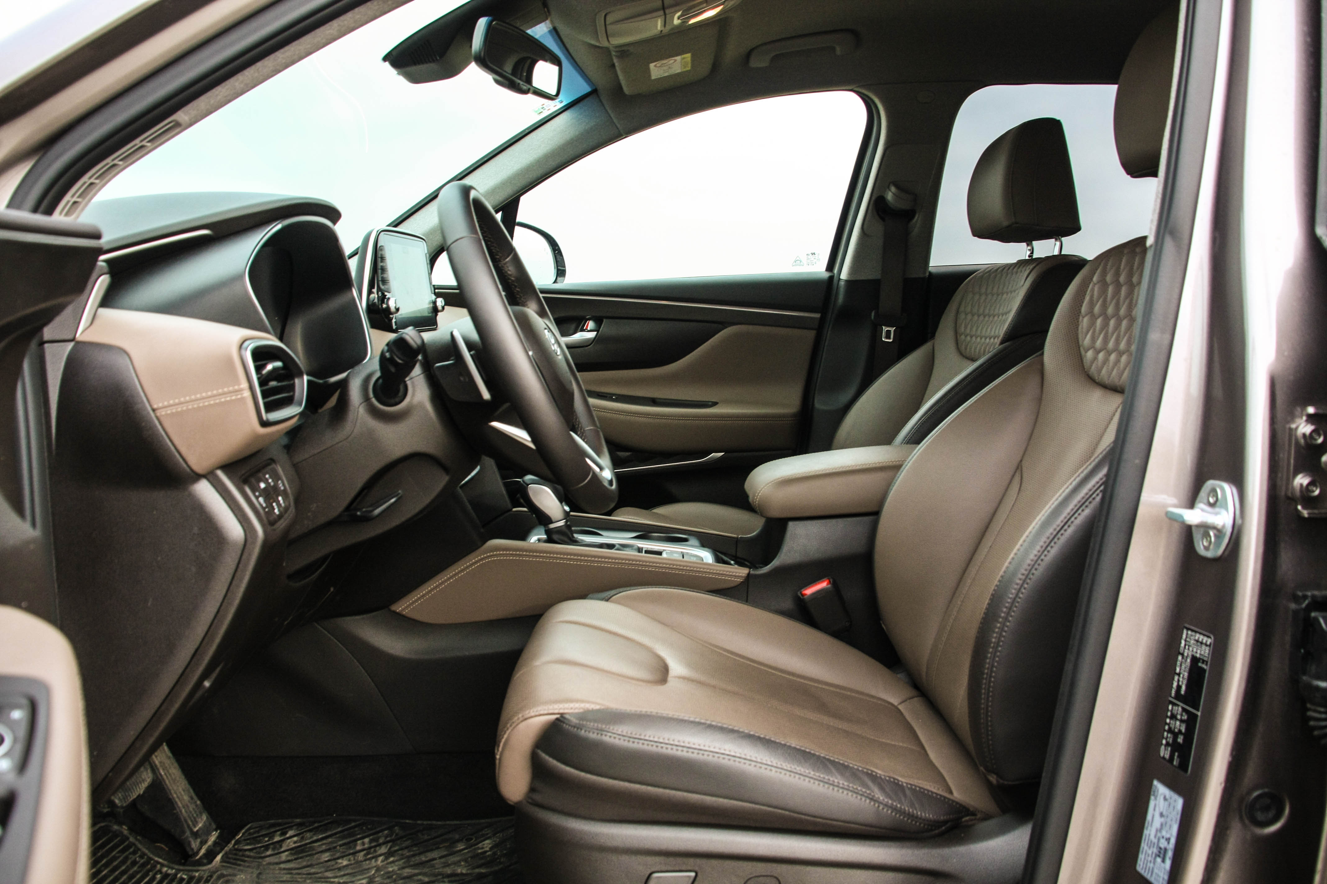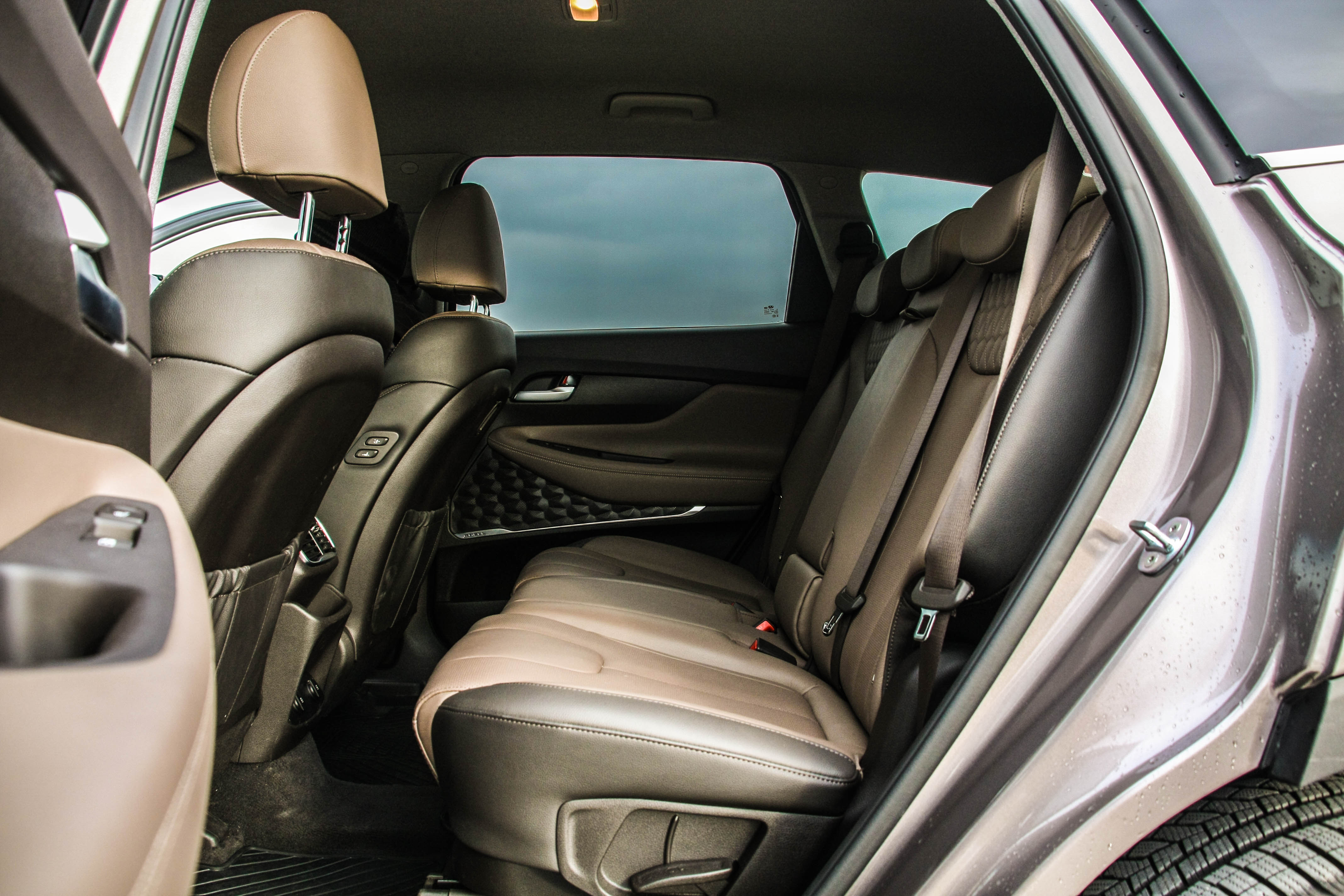 Spomenuta kvaliteta plastike odnosno biranih materijala kod izrade interijera, preciznost spojeva te bogata oprema Hyundai Santa Fe ozbiljno podižu stepenicu više na sam ulazak u premium klasu. Prostrana unutrašnjost u smiruju?im tonovima boja nudi obilje prostora, kako sprijeda tako i straga. Voza?ka pozicija se nalazi bez poteško?a zahvaljuju?i podesivosti sjedala ali i upravlja?a, odli?noj preglednosti te izrazito naglašenoj ergonomiji. Prednja sjedala su grijana i hla?ena, tu je i hvale vrijedno grijanje upravlja?a (izrazito korisno u hladna zimska jutra) te naglašeno modularna stražnja grijana klupa koja ?e spremno prihvatiti i tri odrasla putnika. Infotaiment sistem vi?en je kod ku?nih modela te je u pravilu jedina zamjerka upravo na njega s obzirom na sve ostale detalje koje Santa Fe nudi, o?ekivali smo egzoti?niji sistem. No, ozvu?enju ne možemo na?i mane, a potpisuje ga ameri?ki premium proizvo?a? Krell. Prtljažnik nudi 620 litara obujma te preklapanjem stražnje klupe bez problema nudi mogu?nost selidbe ?etvero?lane obitelji.