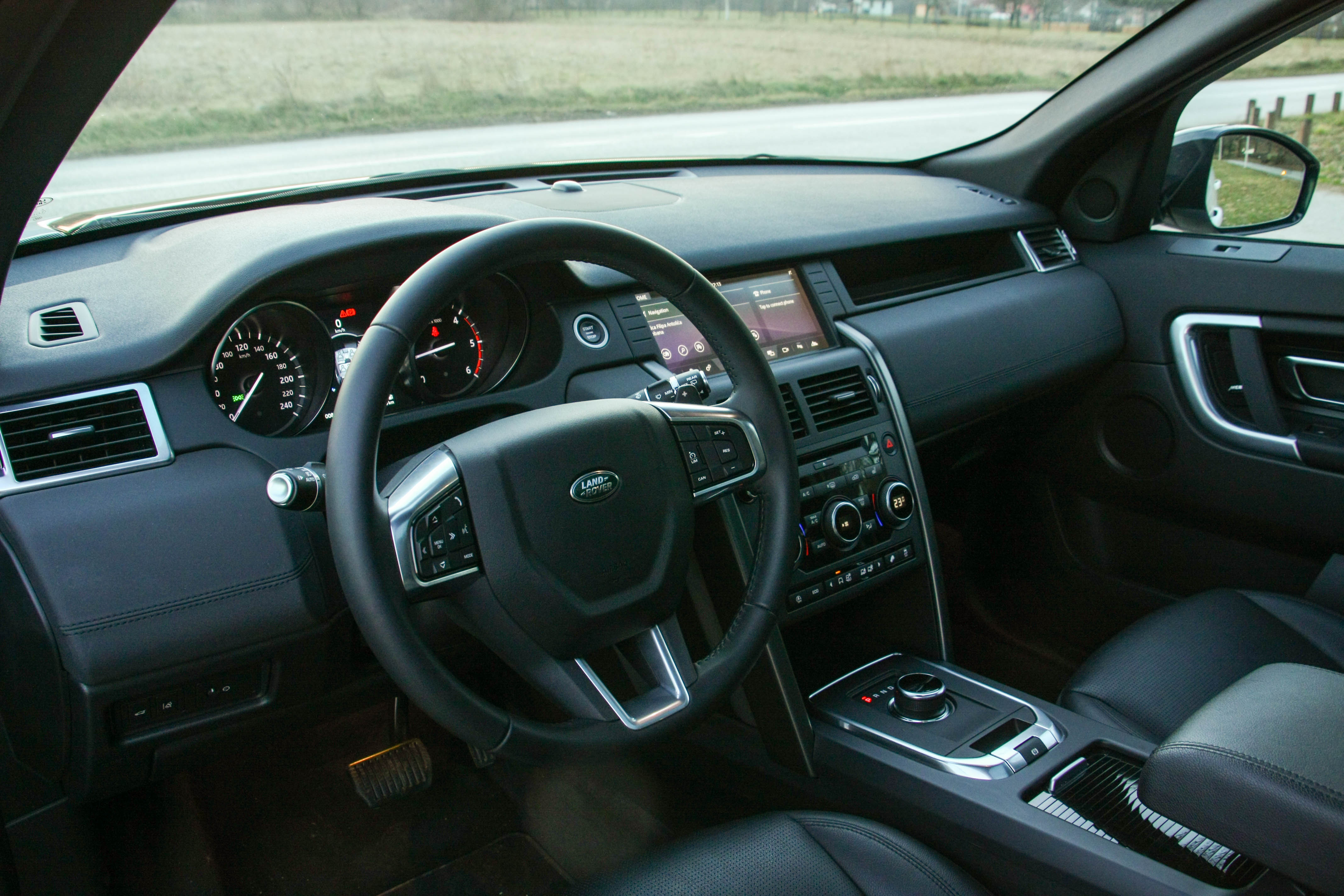 Unutar interijera nešto jednostavniji pristup u odnosu na vanjštinu, no dašak luksuza te skupih i kvalitetnih materijala kao i odli?ne završne obrade vidljiv je na svakom milimetru ovog interijera. Oku ogodna, a prstima meka i kvalitetna plastika, izrazito ergonomi?an te voza?u podre?en interijer nastoji opravdati težinu imena Land Rover. Voza?ka pozicija lako se pronalazi, preglednost je odli?na, a sjedala podesiva u svim smjerovima (kod tesnog modela elektronski pokretana i grijana) spremno ?e prihvatiti pet odraslih putnika. Bogata oprema pra?ena velikim brojem naprednih sustava, panoramski krov, veliki središnji 10,2“ ekran te odli?an Meridian audio sustav uz ve? spomenutu kvalitetu materijala i završne obrade kao i mobilnu aplikaciju – Land Rover InControl Remote (na Android i iOS pametnim telefonima automobil se spaja direktno, preko interneta, odnosno samo jednim dodirom na ekran mogu?e je pokrenut motor i klimatizacija bez obzira koliko se daleko nalazili od samog vozila) nastoje opravdati cijenu od 613.000 kn koliko stoji testni primjerak.