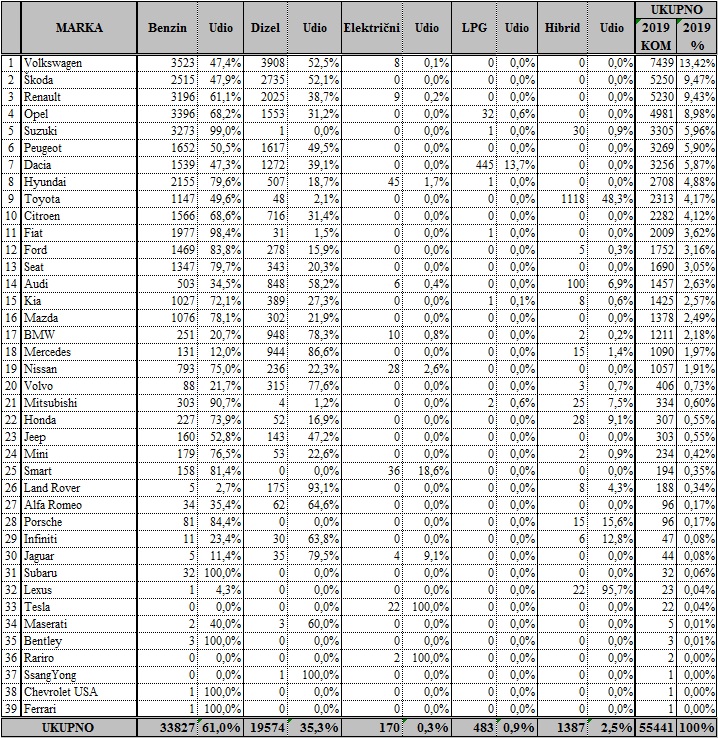 Tradicionalno tržišni hit je Volkswagen koji drži gotovo 13,5 % tržišta, Škoda je druga sa 9,4 posto, a Opel tre?i sa gotovo okruglo devet posto tržišnog udjela. Me?u modelima uvjerljivo najtraženiji je Škoda Octavia, drugi je Renault Clio, a tek tre?i Volkswagen Golf, što zbog dolaska Golfa VIII nije neo?ekivano.