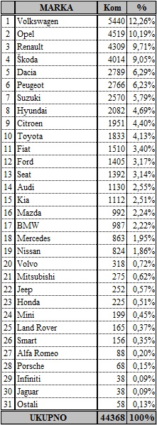 U kategoriji proizvo?a?a najuspješniji u srpnju bio je Volkswagen sa 836 primjeraka, a slijede Škoda sa 788, Opel sa 706, Renault sa 400, Dacia sa 361, Hyundai sa 338, Peugeot sa 301…