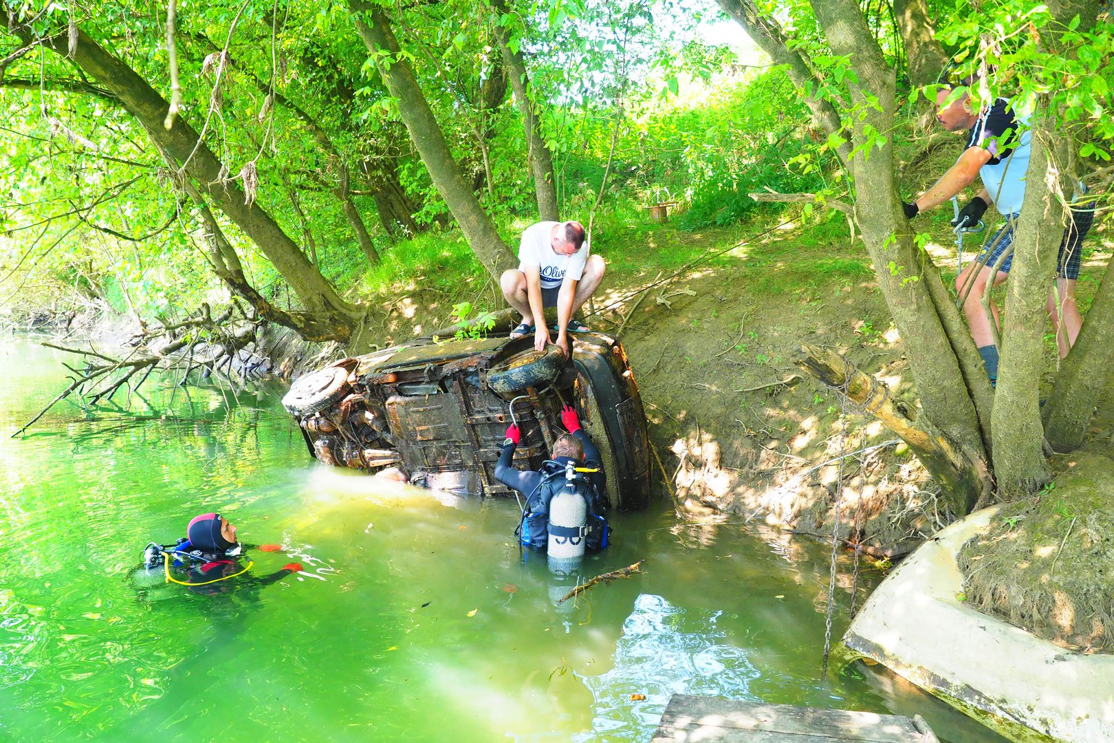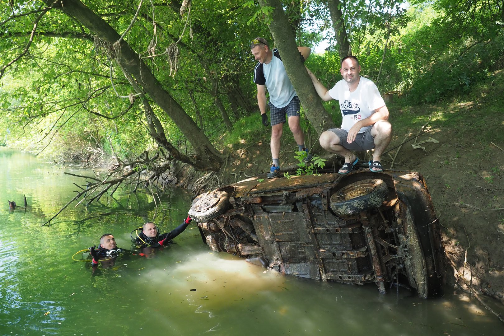 Mještanin Tomislav Luki? je svojim traktorom izvukao olupine na obalu dok je Željko Žeger svojim ?amcem prevozio ronioce na pozicije za izvla?enje. ?lanovi udruge Zelene stope koji su do sada iz nacionalnih parkova i parkova prirode u akciji O?istimo hrvatsku powered by Renault izvukli više od 16 000 auto olupina izvukli su i ove te ih odmah odveli na reciklažu. Kako su nam rekli ronioci Igor Mašala i Siniša Butigan ovakvih pozicija ima još mnogo na našim rijekama a s obzirom da je ovaj dio Kupe tijekom rata bio podru?je razgrani?enja još uvijek postoji opasnost od zaostalih mina. Krunoslav Huljina iz mjesnog odbora predao je sudionicima akcije zahvalnice te ih pozvao da i sljede?e godine do?u u Šišljavi?.