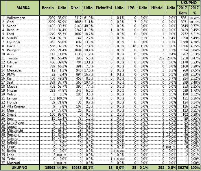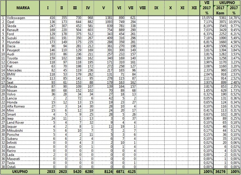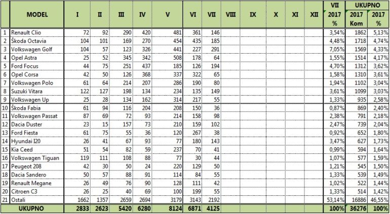 U prvih sedam mjeseci teku?e godine prodano je 36.276 novih automobila, što je osjetan porast u usporedbi s 2016. godinom, kad je u istom razdoblju prodano 29.965 primjerka.